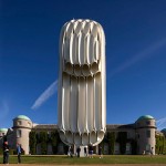 Avec cette sculpture de la Jaguar E-Type de plus de 28 mètres de haut, Gerry Judah met en avant la marque de voiture dans le cadre du Goodwood Festival of Speed. Pesant plus de 175 tonnes, cette création en tubes d’acier est à découvrir en images dans la suite.